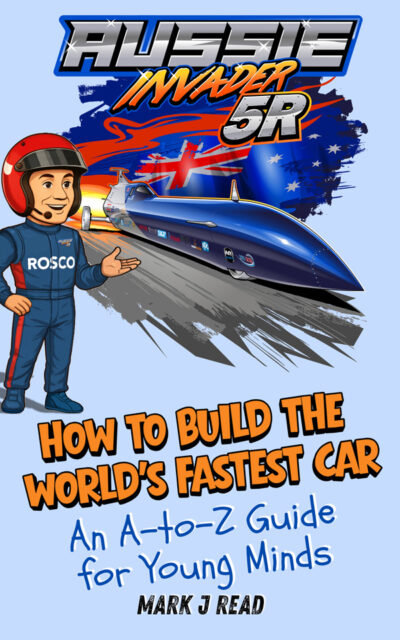 The most recent book “How To Build The World’s Fastest Car“, is mainly aimed at children from 6 – 12 years of age. This incredible book covers the science and engineering that has gone into building Aussie Invader 5R in an easy to follow way that will excite children of all ages. This full colour 65 page book will make a fantastic gift for any budding speed freak, rocket scientist or engineer, boy or girl.