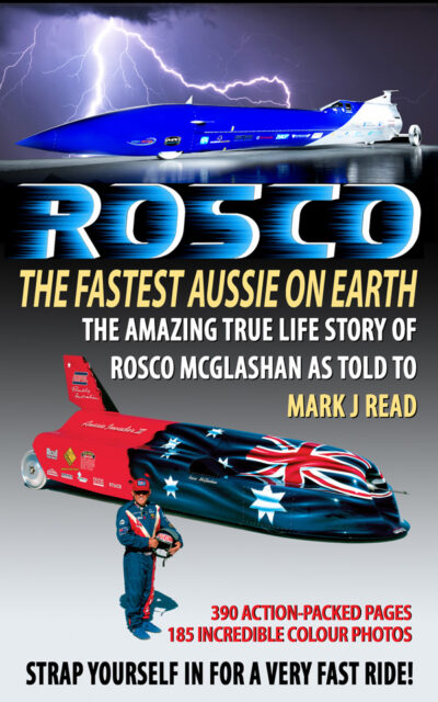 The second book is “ROSCO The Fastest Aussie on Earth“. It’s for adults, and tells the incredible story of Rosco’s life, following his early days, running away at twelve to pursue a racing career. His obsession with speed and living on the edge sees him break records, get kidnapped by the Russian Mafia and many near death experiences. It has been a #1 best-seller on Amazon.
